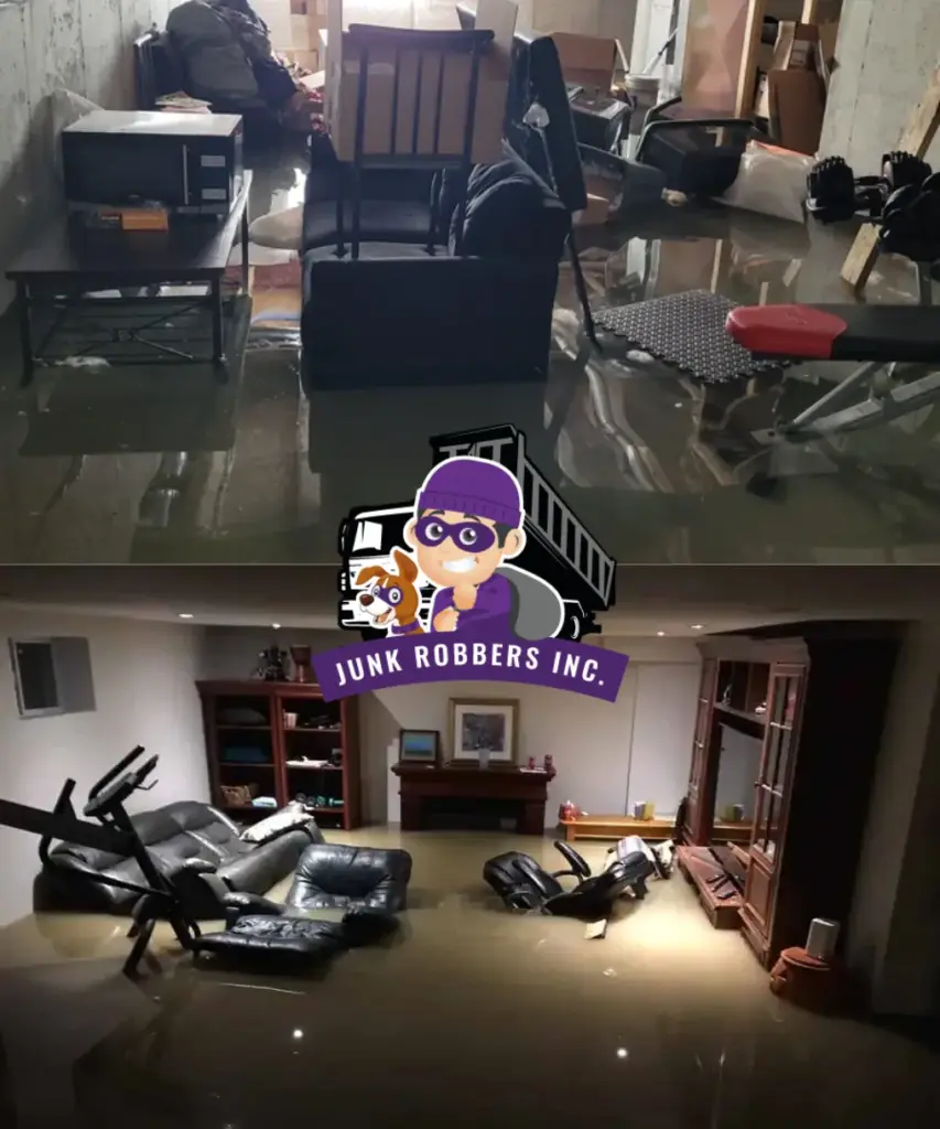 Junk Robbers is here to help you. We clean basements, remove junk, and fix water damage fast. Our team is friendly, trained, and always on time. We work hard and treat your home with care. We use safe tools to clean and remove all damage. Flooded basement? No problem. We are ready 24/7 to help.